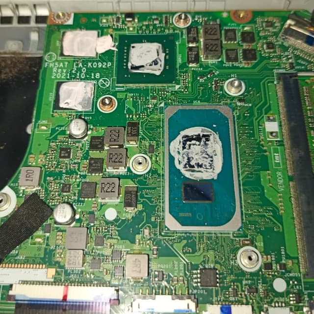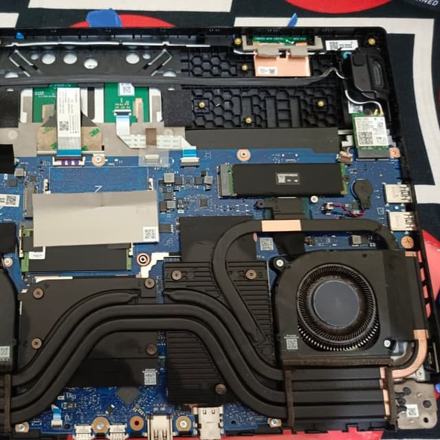 Carry out hardware maintenance by replacing thermal paste on the CPU and GPU to reduce operational temperatures and increase laptop performance stability. The process is carried out by dismantling the cooling system, cleaning the remaining old thermal paste using isopropyl alcohol, then applying new thermal paste.