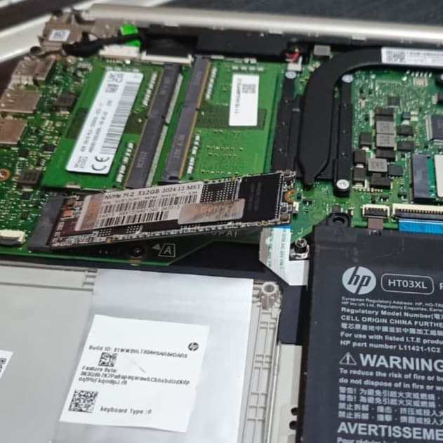 Handling the problem of laptops not being able to boot due to damage to the built-in SSD. The process is carried out by removing the old SSD, replacing it with a new SSD, then reinstalling the Windows 11 operating system along with important drivers and applications. After replacement, the laptop returned to normal function.